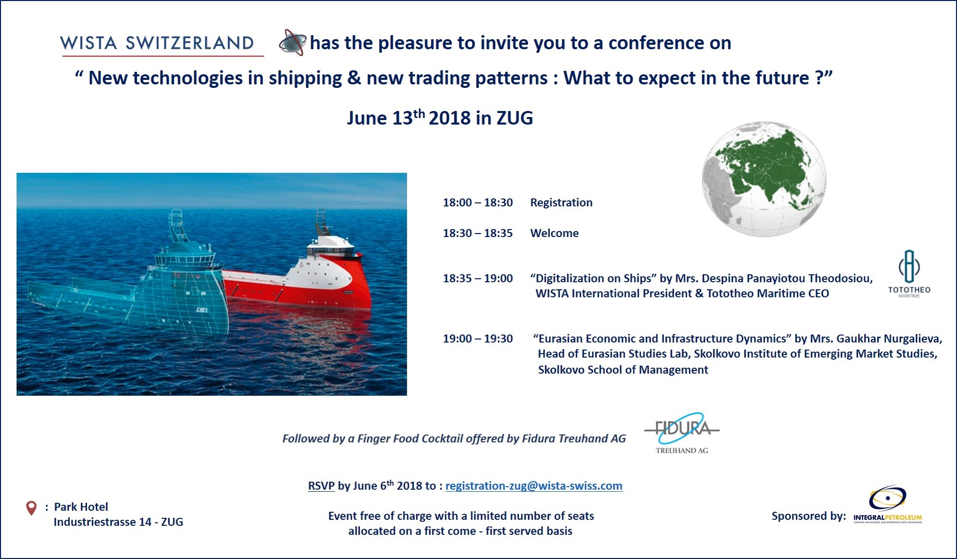 WISTA Conference: Digitalization on ships, on June 13, 2018 – ZUG