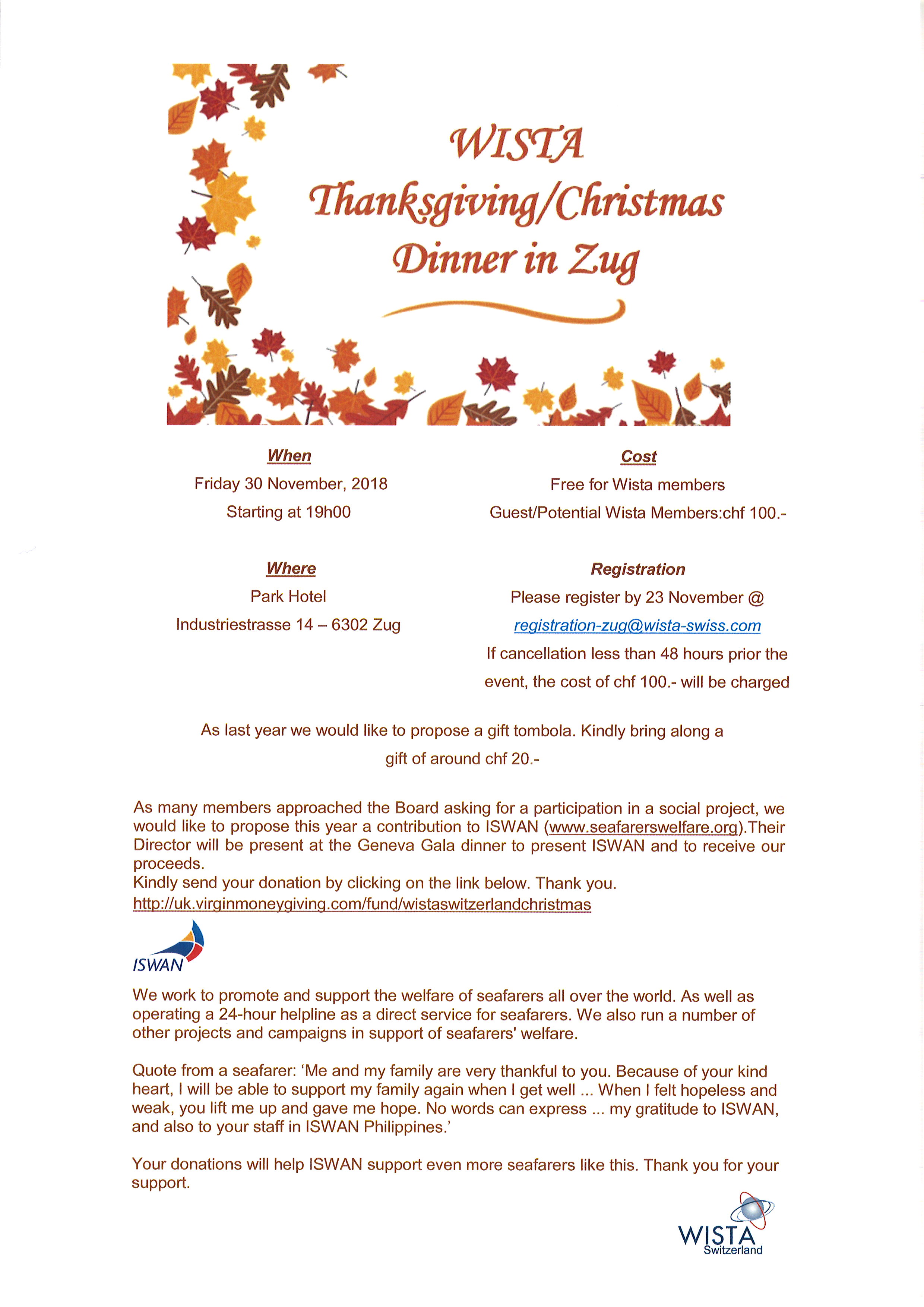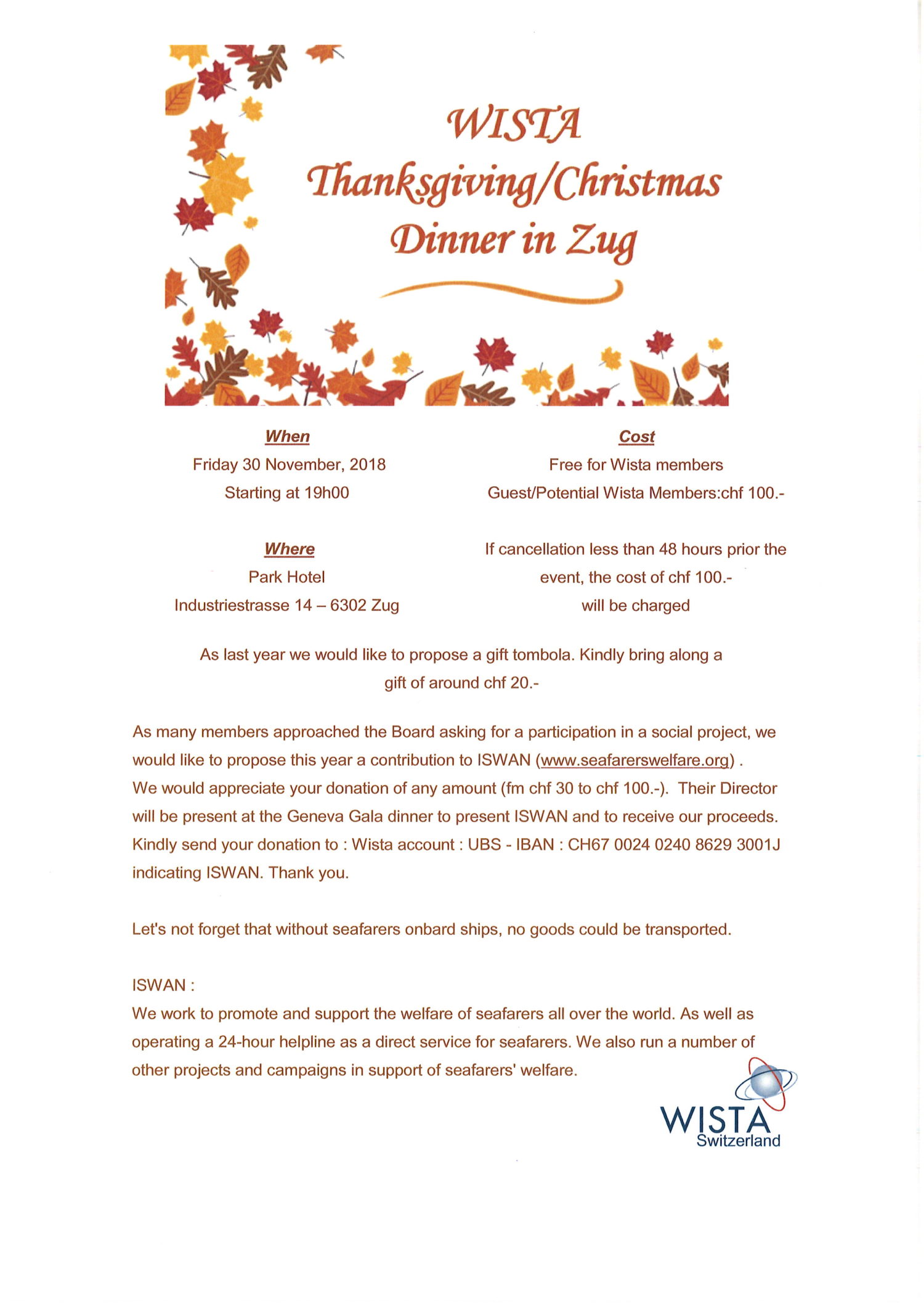 WISTA Thanksgiving / Christmas Dinner on November 30, 2018 – ZUG